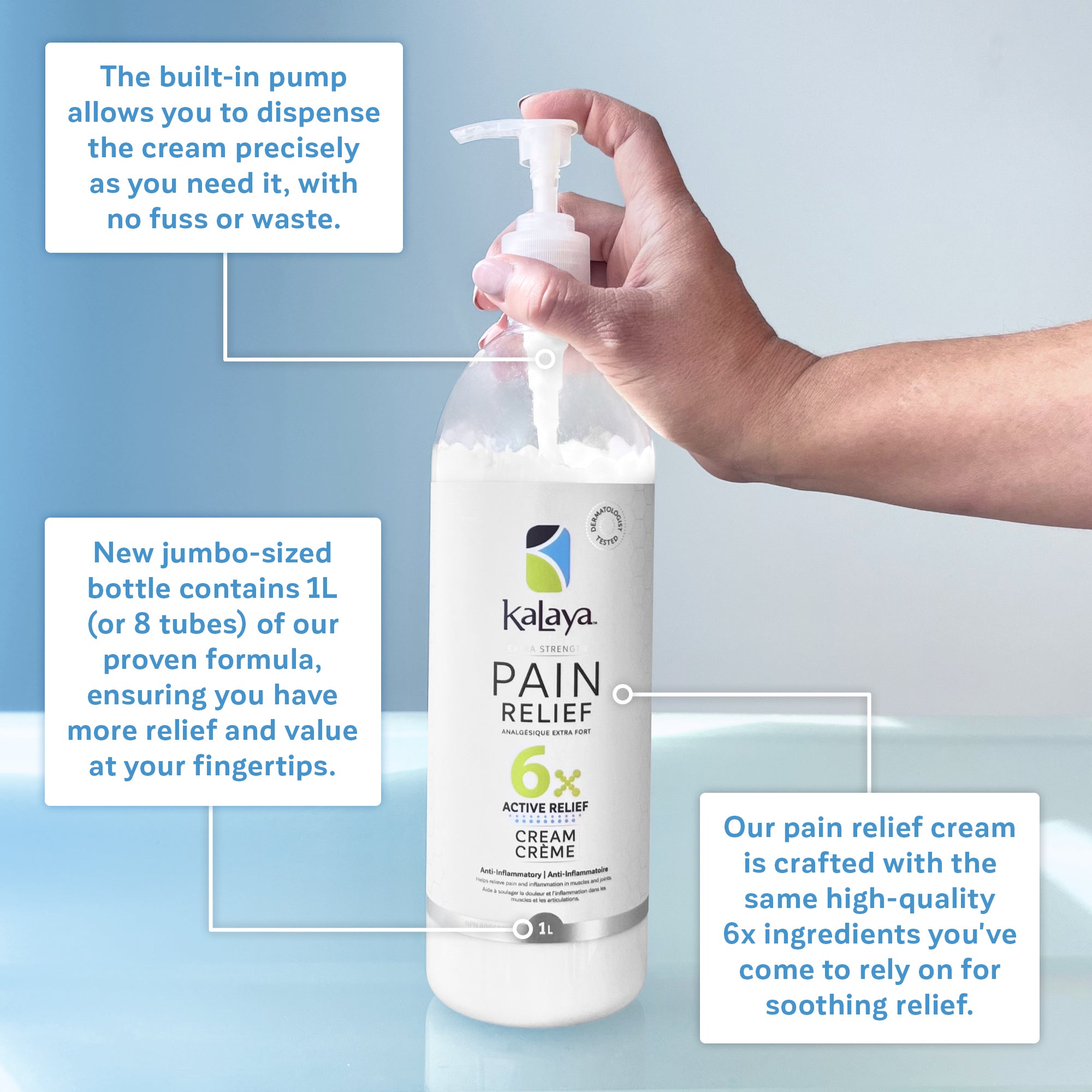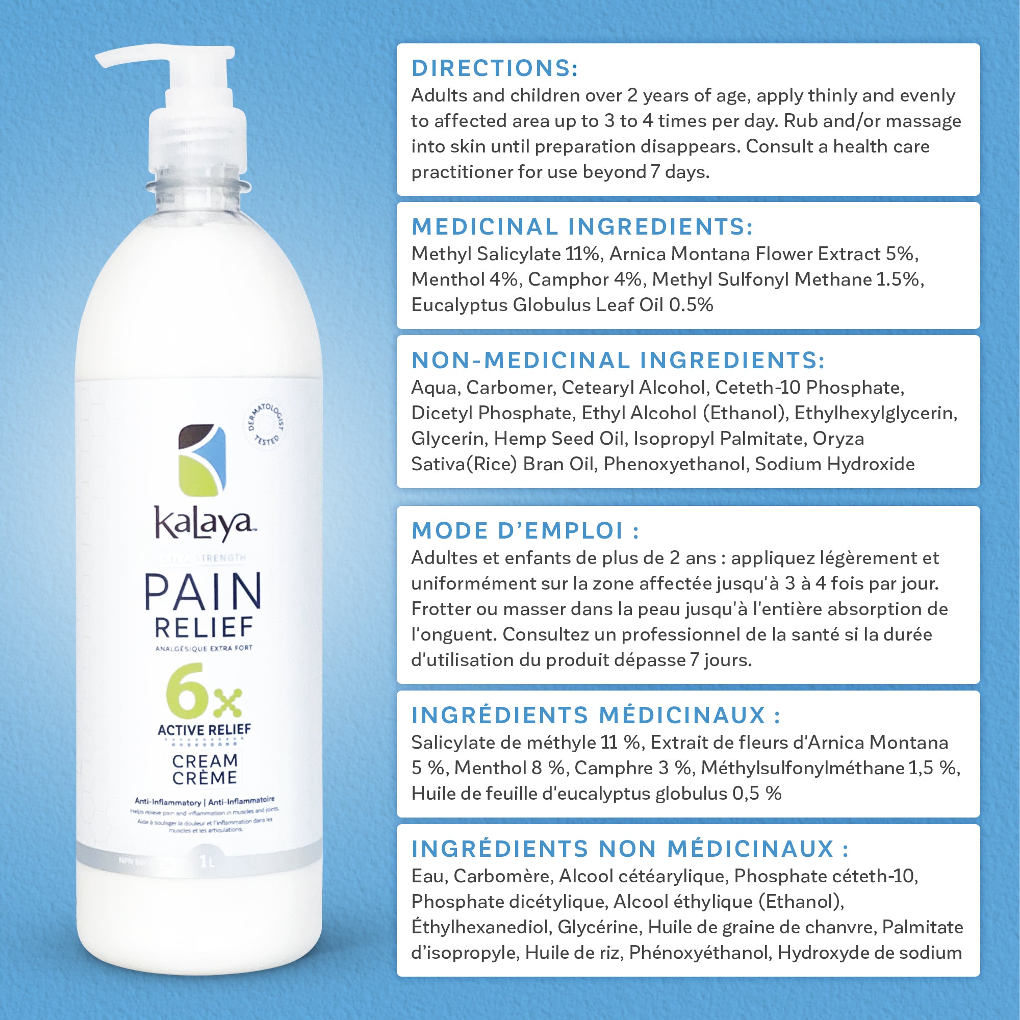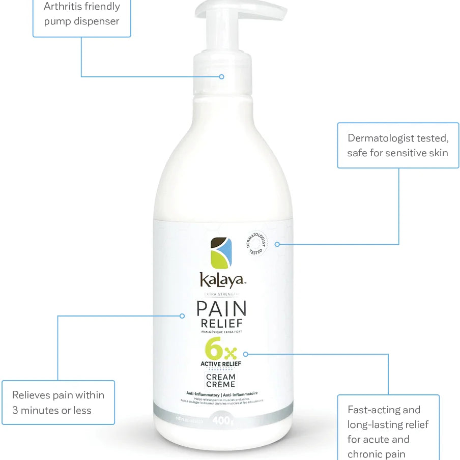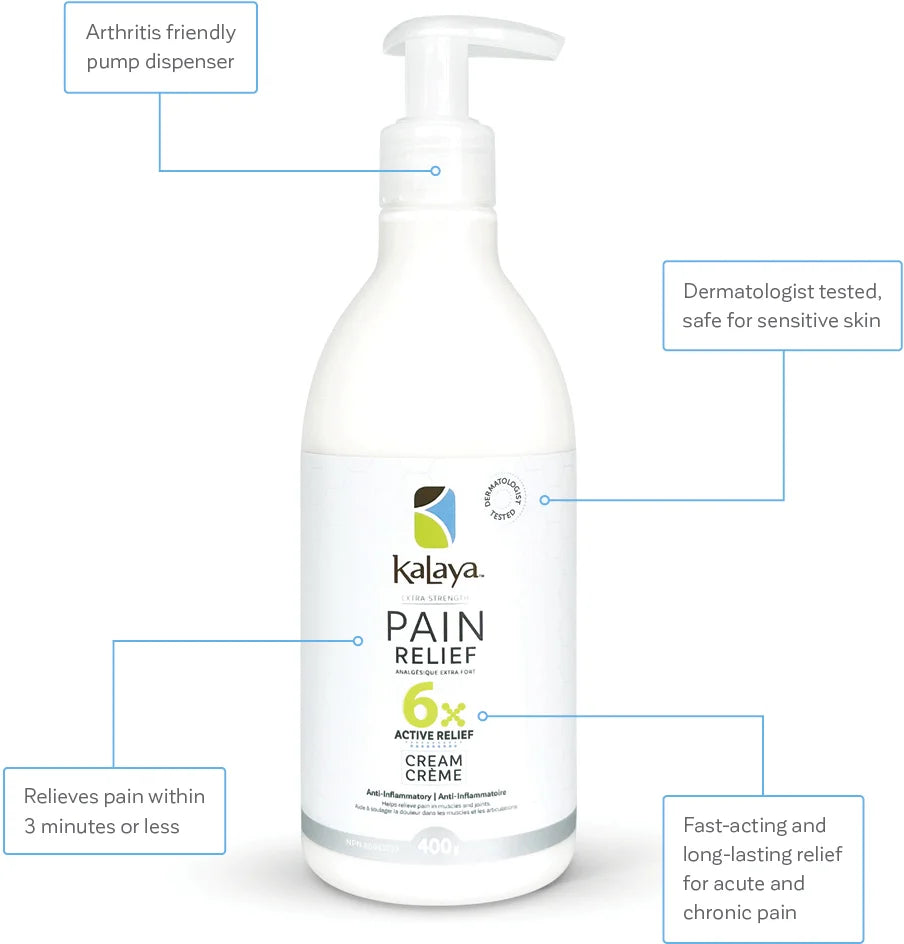 Fast-acting and long-lasting, KaLaya 6x Extra Strength Pain Relief temporarily relieves aches and pains of muscles and joints associated arthritis, back pain, joint pain and muscle pain.