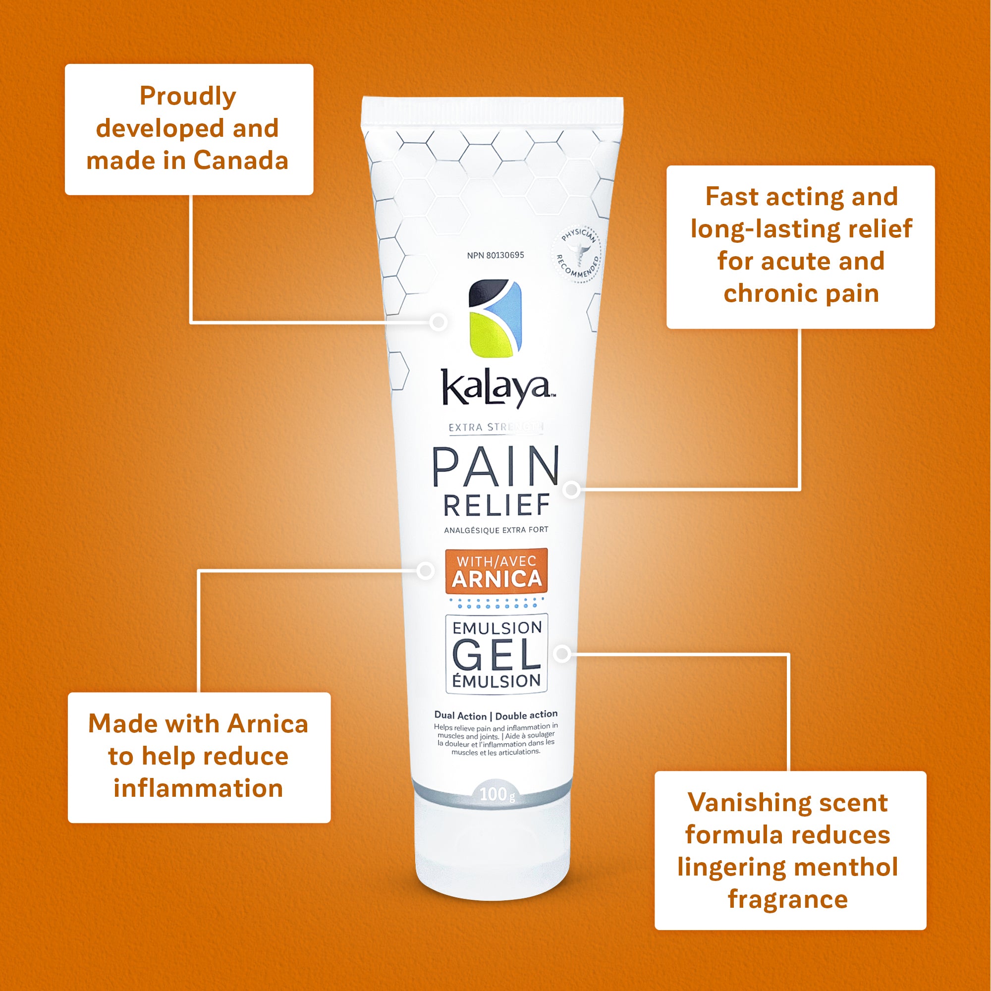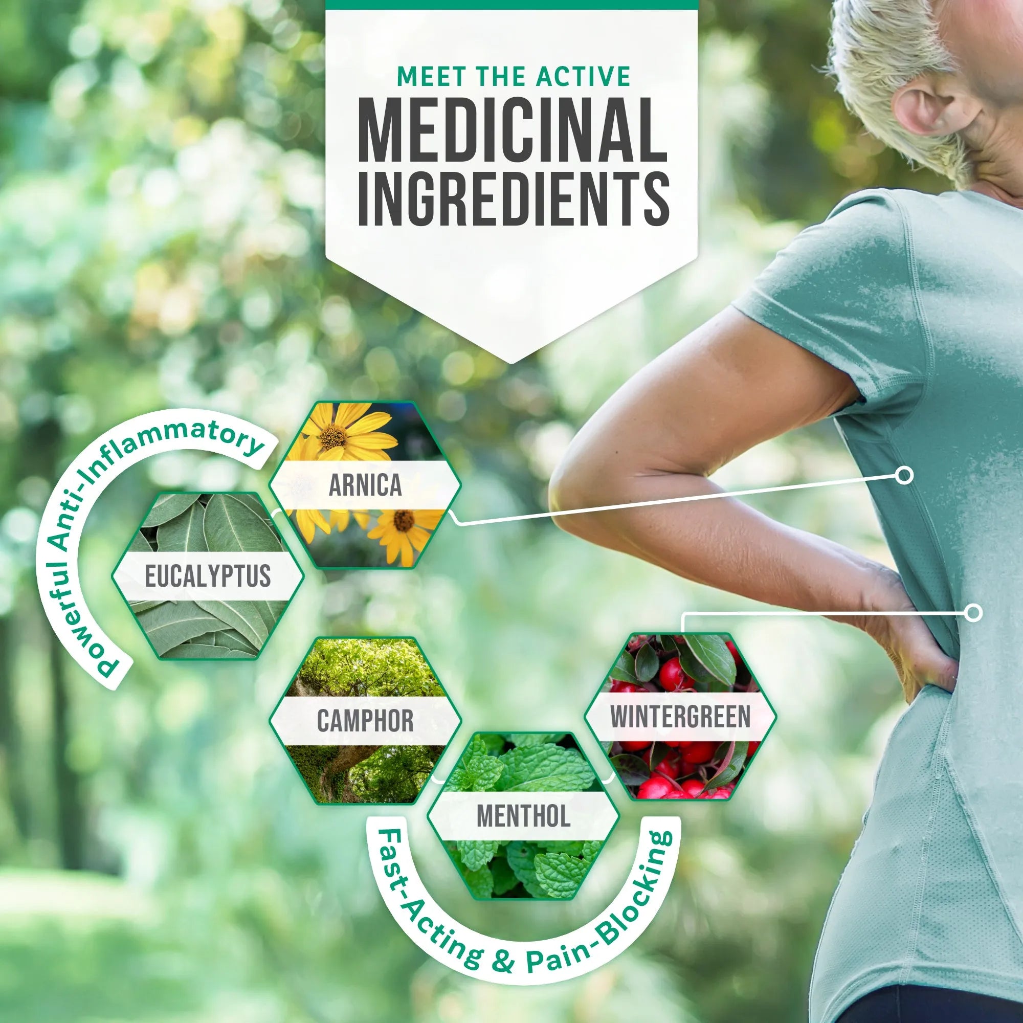 Designed by medical professionals and dermatologist tested to deliver invigorating muscle and joint relief. Formulated with proven, natural active, pain-blocking and anti-inflammatory ingredients including Arnica, Eucalyptus, Menthol and Camphor.